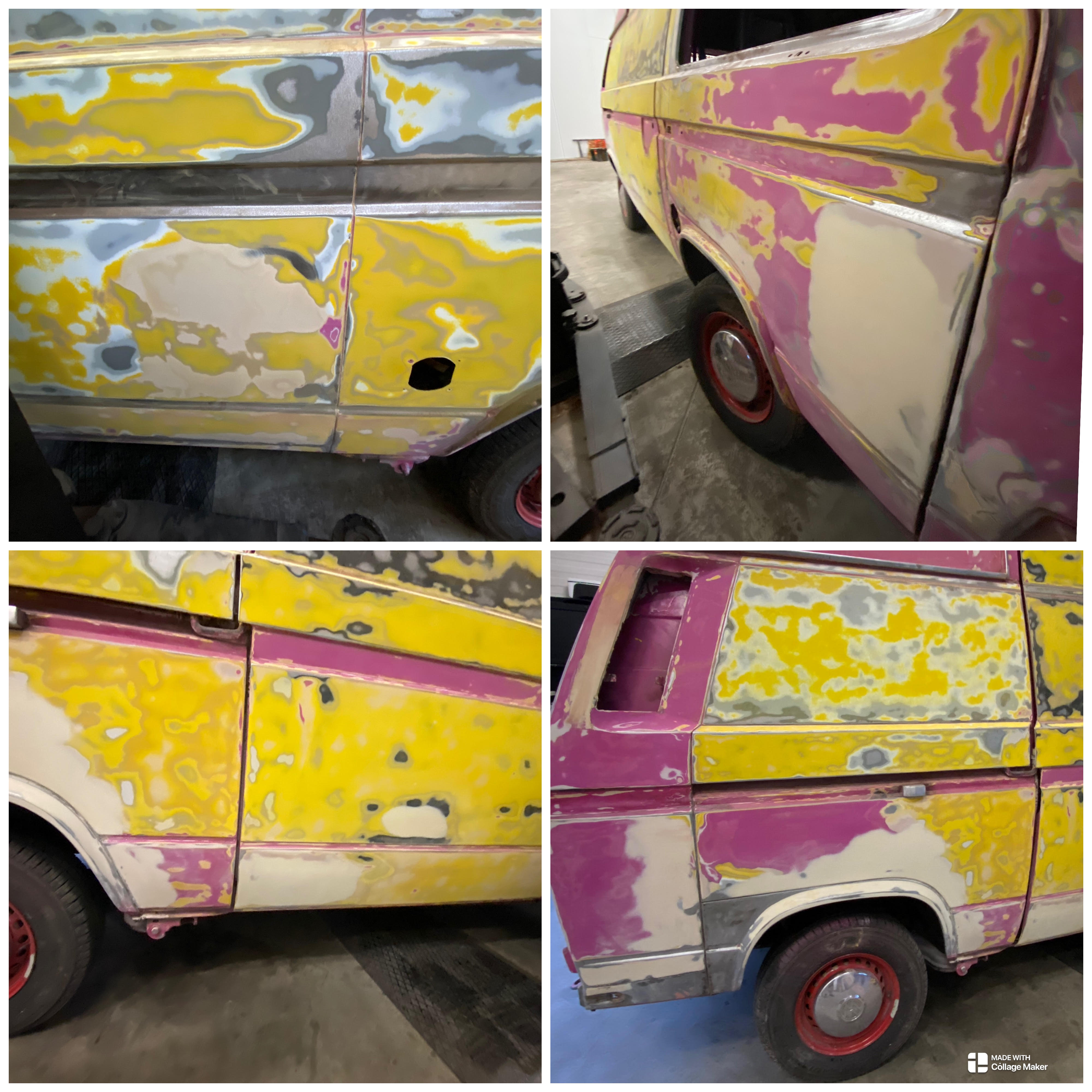 | Buzz staat inmiddels al weer anderhalve maand bij de spuiter en er begint nu schot in te komen, Buzz wordt momenteel opnieuw geschuurd, nee niet al ons schuurwerk was voor niks geweest maar kon beter Ach ieder zijn vak zullen we maar zeggen. Inmiddels zijn er ook al diverse plekken geplamuurd waar hij al aardig van opknapt. |